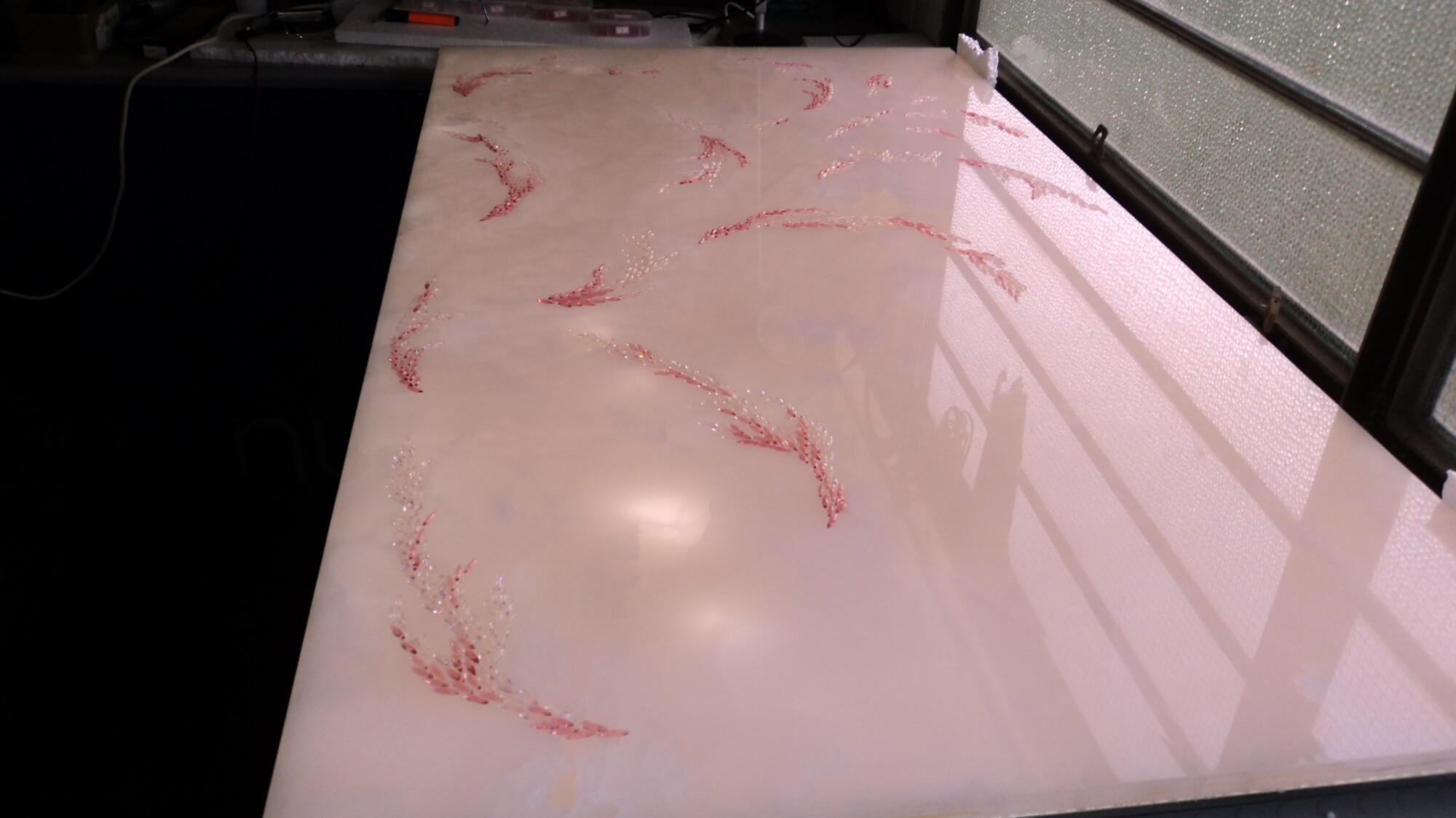 Backlit IP67 Pink Onyx Wall With Embedded Pink Crystals / Private House, Principality of Monaco